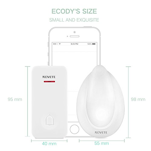 NOVETE Ecody Wireless Doorbell with LED Light, Door Chime Kit w/ Kinetic Self Powered (No Battery Required) and IP7 Waterproof Weatherproof (Immersible in water) Transmitter