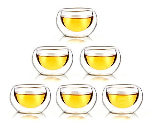 Happy Sales set of 6 Heat Resistant Double Wall Glass Teacup Sake Cups