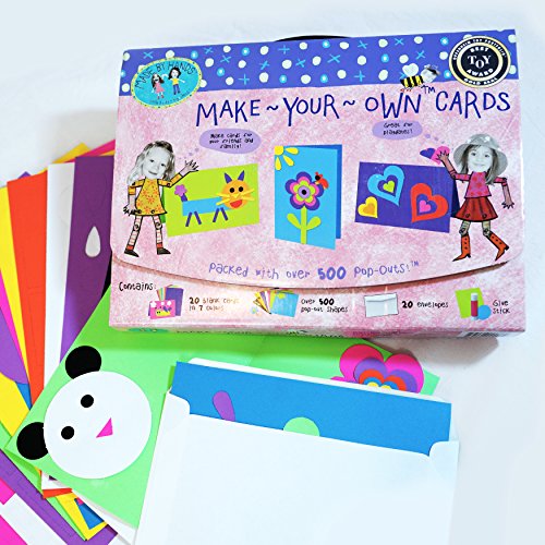 Art kits that inspire young imaginations! your child will love creating unique and vibrantly-colored greeting cards, holiday wishes, thank-you notes and invitations. The pop-outs! tm are die cut with kids in mind. Perfectly cut to fit little hands so kids can get their imaginations running and the do it yourself crafts . Contains over 500 brightly colored (fun and easy pop-out shapes), 20 cards & envelopes, and a glue stick. Whether they are making a card for you or grandma and Grandpa, an aunt or Uncle, let them so their inner "do it yourself" expert! kids are amazing and will create amazing things with the make your own cards kit by made by hands.