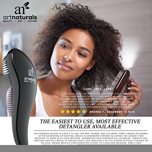 Studio : ArtNaturals Publisher : ArtNaturals Binding : Health and Beauty Product Description Ouch. Your brush snagged on a tangle again. Art naturals' detangling hair brush set's two ergonomically designed brushes make that pain a thing of the past-while they minimize breakage and add shine. The clever little brushes fit in your palm so you can be stylin' easily, anytime. Oh and they're great for kids' hair, too. ArtNaturals' detangling hair brush kit is the premium solution to detangling knotted and matted hair. ArtNaturals is excited to offer this innovative solution to the often painful and (as parents can attest) stressful task of removing tangles, knots and curls from unruly hair of all types. With these thoughtfully designed brushes, you'll no longer need bulky and awkward ones that dig into your (or your child's) hair and scalp. Our premier detangling brushes use innovative design and ergonomic motion to provide a pain-free brushing experience. Almost everyone's hair tangles to some degree, but those with super-thick and curly, long and fine or dry and damaged hair experience even more tangles. And, if you don't have time to brush your hair during the day, you can expect more tangles as well. Paraben free and cruelty free. The unique curved handle and bristles are ergonomically designed to work easily with your natural brushing motion. Soft, gentle cone-shaped bristles massage the scalp while they effortlessly separate hair in a unique sideways motion. This process means no more tugging or pulling hair. The separating motion results in silky, smooth, tangle-free hair-and an incredibly clean brush. No tufts or clumps of hair to dig out. Perfect for men, women and kids, the brushes are ideal for all hair types-thick, thin, curly or straight. Guaranteed "owie" free. 0