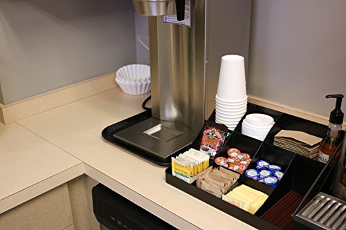 Black Coffee Condiment Organizer Caddy Tray - Perfect Storage Bin Station Holder For Small Home Table Or Office Breakroom - Box Organizers And Bins Hold Creamer Pod Sugar And Cup on Countertop