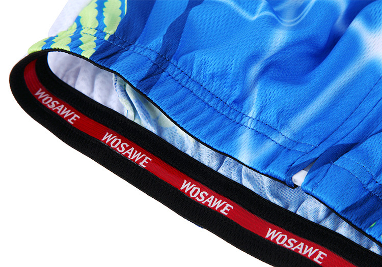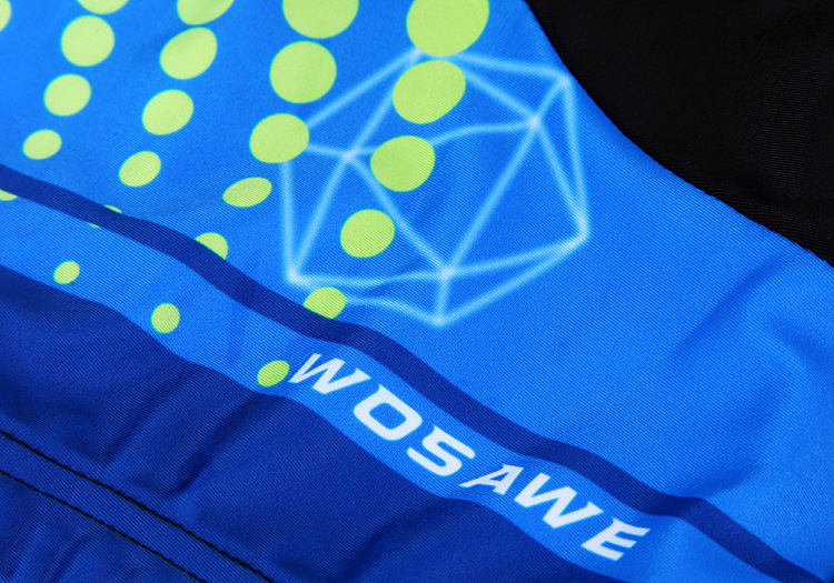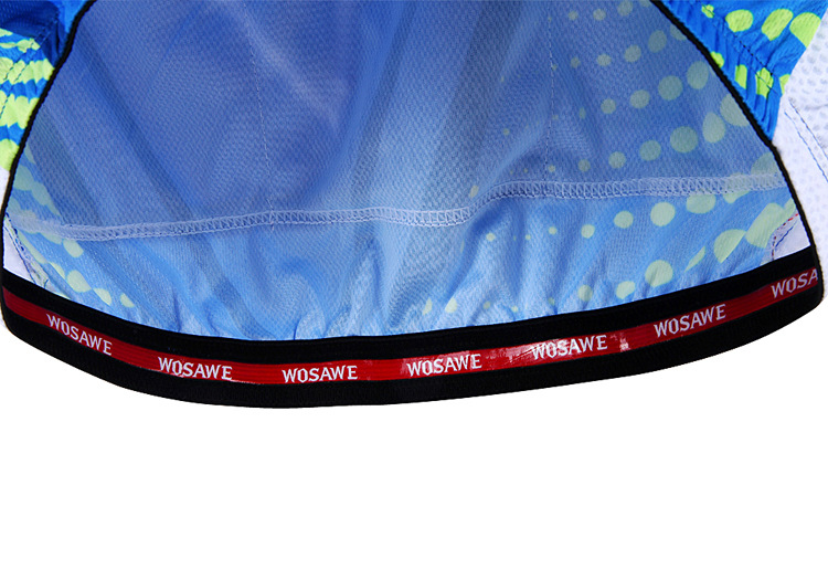 Features? Applicable・More breathable・ quick dry・and elastic. Suitable for long and short riding・ night riding・ mild cross country・and short distance racing cycling." Material?・"Win by breathable・? use more breathable quick dry and ultralight material・ meanwhile・ accoring to human body engineering use suitable materials to make it more dry and comfortable. Design & Cut・?3D and seamless cut to reduce the body rubing・more comfortable and fitness・The armpit? of the Jersey adopt a whole piece special mesh material・ sweat absorption ・breathable and quick drying ・ 3 Pocket・?Classic 3 pockets at the back・ easy for holding items. Reflective? Strip・?reflective strip at the back to ensure night riding safety. Silicone Hem・?WOSAWE logo silicone band・ can provent skin allergy and the cloth upglide during riding very well. Gel Pad・?WOSAWE unique? Gel Pad with Multi-Cooling hole・ Keep drying and anti-bacterial High Quality Zipper・?WOSAWE?customized?zipper・?has?passed?the?stringent?testing?required?to?prevent?from?getting?stuck?and?riot?crack. Print and ink・?Sublimation print technology・ use high quality ink・ Enviromental and never fade.