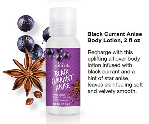 - Black Currant Anise Body Lotion, 2 oz - Recharge with this uplifting all over body lotion infused with black currant and a hint of star anise, leaves skin feeling soft and velvety smooth.