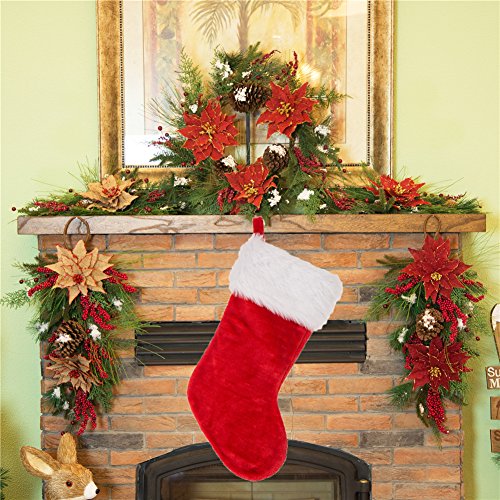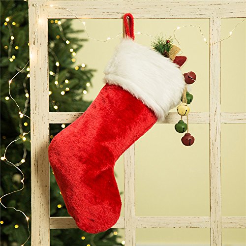 Glitzhome Christmas Decor Traditional Red Plush Santa Stocking