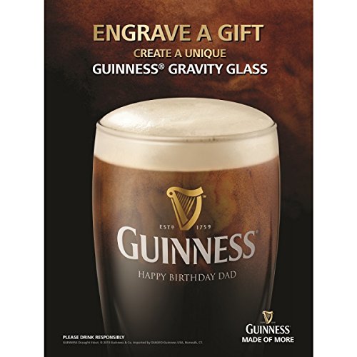Guinness® Engraved (Personalised) Gravity Glass Stand out from the crowd with your own Personalised Guinness® Gravity Glass! Turn an ordinary Guinness® pint glass into something special with a custom engraving. This Guinness® Pint Glass is branded with the traditional Guinness® logo and colors, and an embossed Guinness® Harp on the back. - GUINNESS® ENGRAVED GLASS