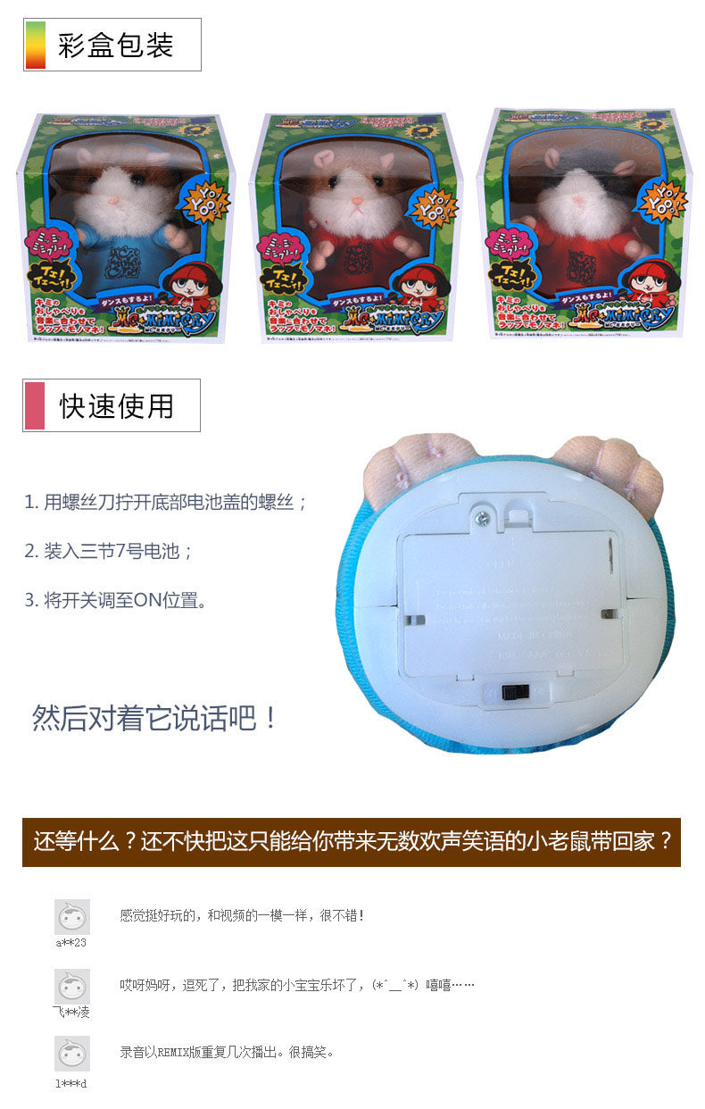 Buyers are all cheering? because it's coming to the end of the market to add bursts of brilliance? the product is powerful? not only equipped with a recording function? but also added a DJ music source. Specific works are small mice after receiving external sound source (recording time is about 4-6 seconds)? then it will play the recording sound source? but also equipped with its own DJ music? and looked cute? fun.
