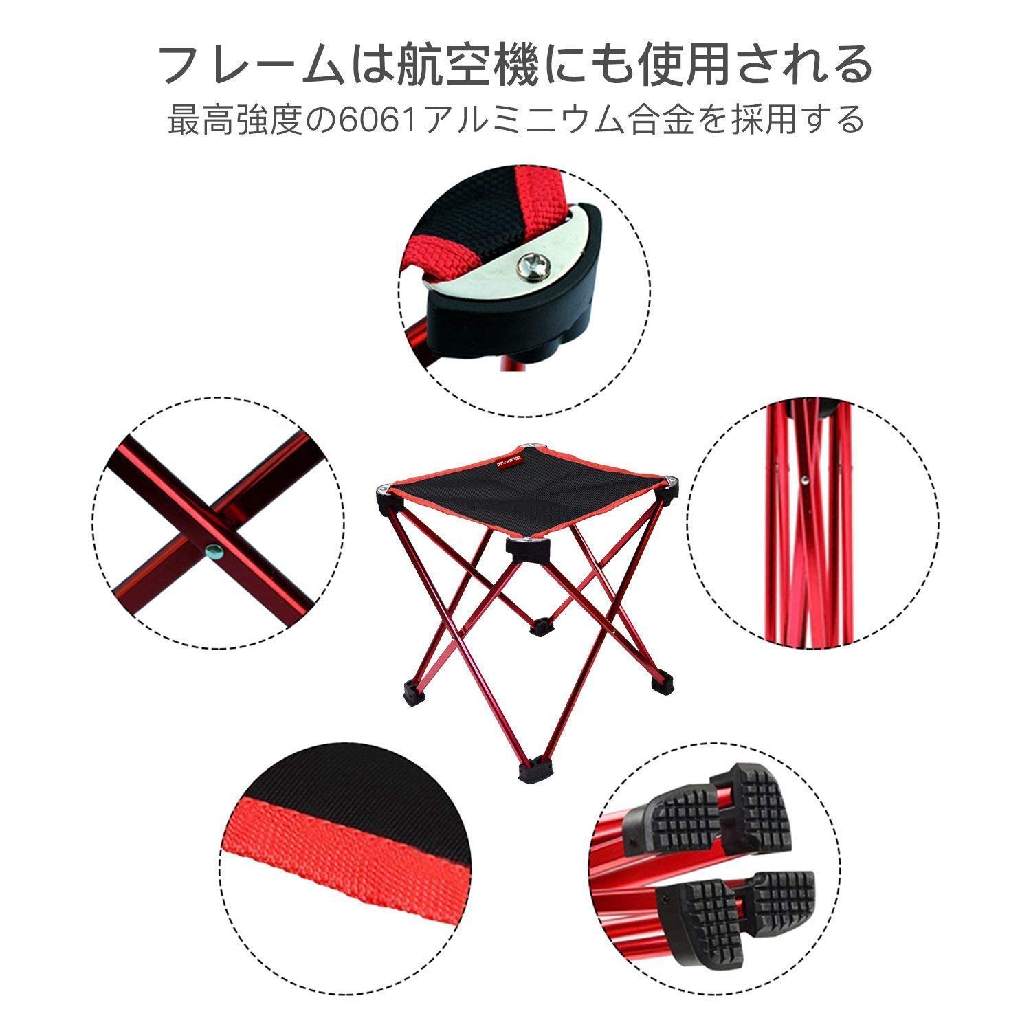 【超軽量・コンパクトチェア】強度の高い8本フレーム構造にすることで、軽量性だけでなく頑丈さも兼ね揃えたアウトドアチェアです。フレームには航空機にも使用される最高強度の超高強度の6061アルミニウム合金を採用。座面生地は防水性の高いオックスフォード布を採用、タフな環境に耐える仕様としました。