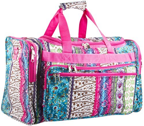 -. Brand : World Traveler -. ClothingSize : 22-inch -. Color : Patchwork - Pink -. Department : womens -. EAN : 0702472380962 -. Feature : Adjustable, detachable non-slip padded shoulder strap / U-top opening provides easy access to roomy zipper secured main compartment / Metal feet allows stabiity to bag when setting down and provides bag floor not to touch floor directly to get dirty / Front exterior zip pocket with two exterior end zip pockets / Silver pewter hardware -. Model : T22-647F -. MPN : T22-647F -. NumberOfItems : 1 -. PackageQuantity : 1 -. PartNumber : T22-647F -. ProductGroup : Apparel -. ProductTypeName : LAGE -. Size : 22-inch -. Title : World Traveler Boho Patchwork Duffle Bag 22-inch -. UPC : 702472380962