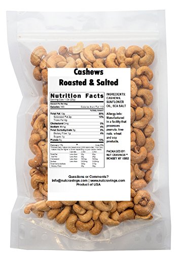 Nut Cravings Fancy Whole Cashews – 100% All Natural Roasted & Salted Premium Nuts – 8OZ