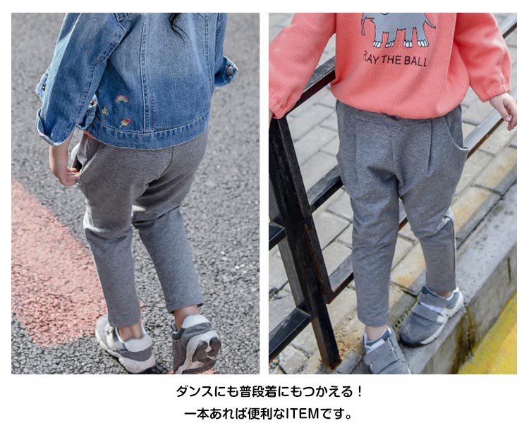 | 姿がとっても可愛いサルエルパンツ♪ヒップ周りゆったりで裾部分まで細くなっていて動きやすさを演出してくれます。素材も柔らかくお子様の肌に優しい着心地です。ダンスにも普段着にもつかえる!一本あれば便利なitemです。 | |