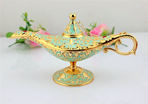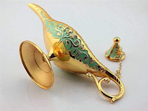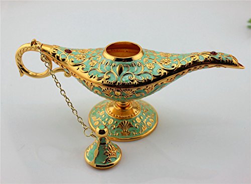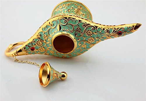 SY Crafts Enamel Metal Aladdin Genie Lamps Incense Burners Legend Aladdin Magic Lamp (Gold+Green)