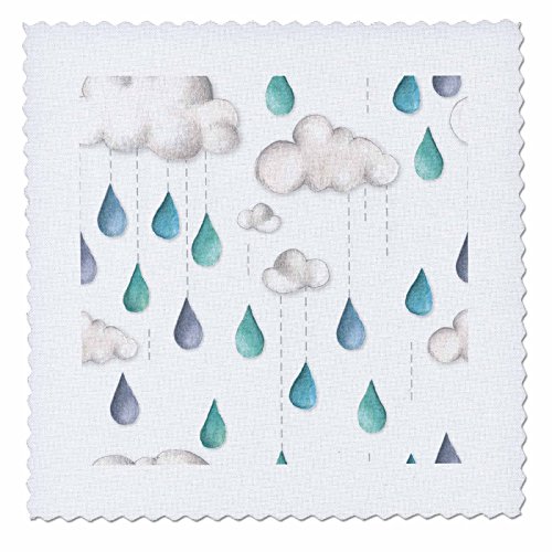 3dRose Cute Watercolor Clouds and Big Rain Drops Quilt Square, 8 x 8"