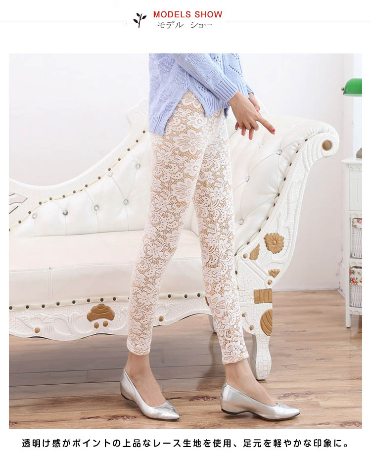 | 足元からオシャレに着こなせる9分丈レンギス。透明け感がポイントの上品なレース生地を使用、足元を軽やかな印象に。カジュアルスタイルにもガーリースタイルにも合わせやすい。レースなので透け感が大人っぽくて上品な印象もプラス!!今から秋にかけて取り入れやすいアイテムですので、ぜひ、お試しみて!! | |