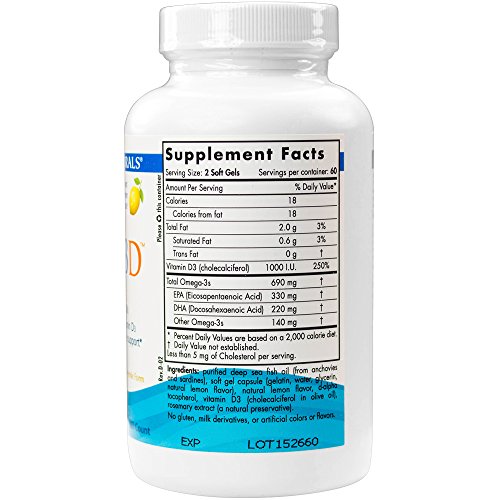 -. Title : Nordic Naturals, Omega-3D, Lemon, 1000 mg, 60 Soft Gels