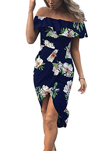 Feature: Asymmetrical Hem, Boat Neck, Floral Print, Off Shoulder, Swing, Sundress