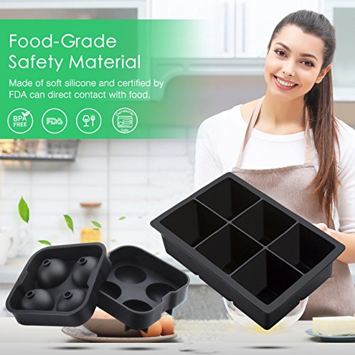 Ice Cube Tray, (2Pack) Aovin Sphere Ice Ball Maker with Lid & Large Square Moulds, Reusabl Maker Molds , Soft Silicone and Flexible, FDA Certified & BPA Free, Large Ice Great for Beer Whiskey Cocktail