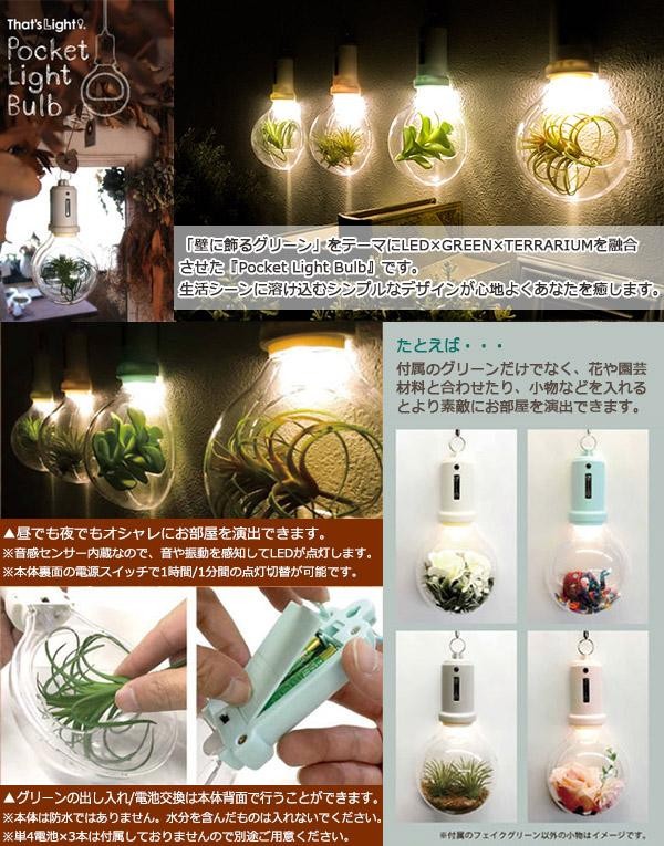 | グリーンや小物を素敵に演出できる電球型壁掛けライト♪ |