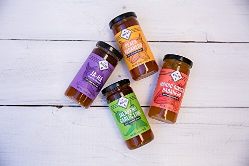 - 3 10oz. HOT PEPPER JELLY FLAVORS - Jalapeno Habanero jelly, Jalapeno Garlic Lime jelly, Peach Habanero jelly