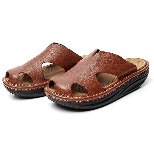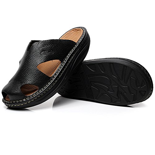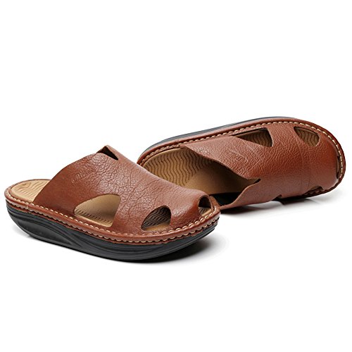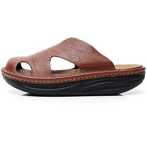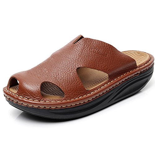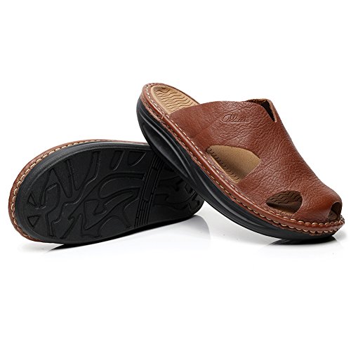 -. Title : Rismart Men's High-End Genuine Leather Sandal Slippers Comfort Platform Clogs&Mules