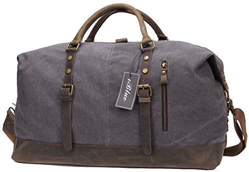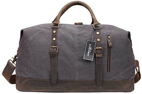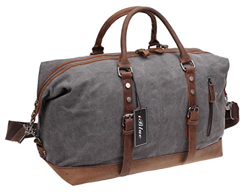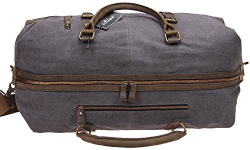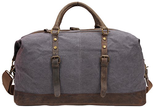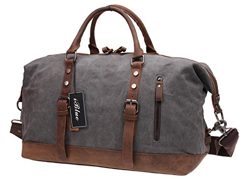 -. Title : Iblue Oversized Canvas Leather Large Capacity Duffle Bag Weekender Bag Grey #381