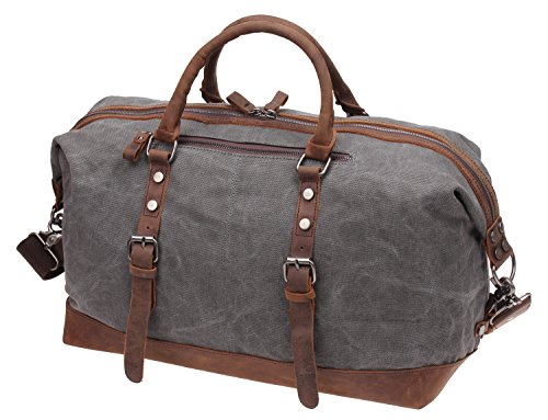 -. Feature : ✔Quality Materials- The Main Pocket Has the Double Large Ykk Zipper(the Ykk is on the metal zipper),Genuine Cow Leather,High Density Heavy And Durable Canvas with Trim Stitching Handcrift.WE HAVE 1 YEAR QUALITY GUARANTEE. / ✔Lighter Weight But Durable- High Density Durable Light Weight Soft Lining,A Detachable and Adjustable Thick Canvas Braid Strap With Wide Padded , The Bottom Is Canvas With Meta Studs For Feet,The Whole Bag Weight Is Lighter But Durable. / ✔Perfect Size Weekend Overnight Bag- The Product Dimensions Is 21 In L X 10 In W X 15 In H;Would Work Great As A Carry On While Flying, On The Train, On The Bus, Or In Any Form Of Transportation. / ✔Large Capacity- The Large Compartment Of The Airline Carryon Bag Can Put A Laptop, IPad, Notebooks And Clothes; Two Inside Zipper Pockets Can Store Small Items Without Having Them Roll Around Inside The Large Compartment; Two Open Pockets For Organization; Two External Pockets Can Easily Hold A Phone, Passport, Tickets And Other Essentials For A Trip. / ✔Multi-Functional Bag- It Can Be As Canvas Leather Duffle Bag,Business Garment Bag,Large Travel Shoulder Bag,Leather Weekender Bag,Carry On Lage Bag ,Leather Overnight Bag,Sports Gear Bags,Workout Bag,Gym Tote Bag;A wonderful and practical gift or present for Valentine's Day,Father's Day,Teachers' Day,Thanksgiving, Christmas, Birthday or almost any other occasion.
