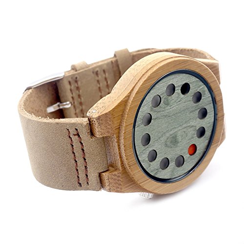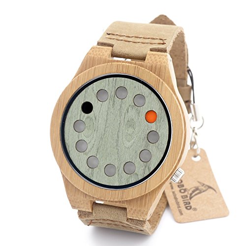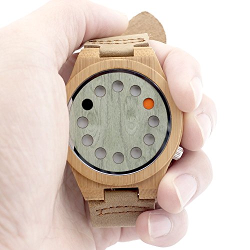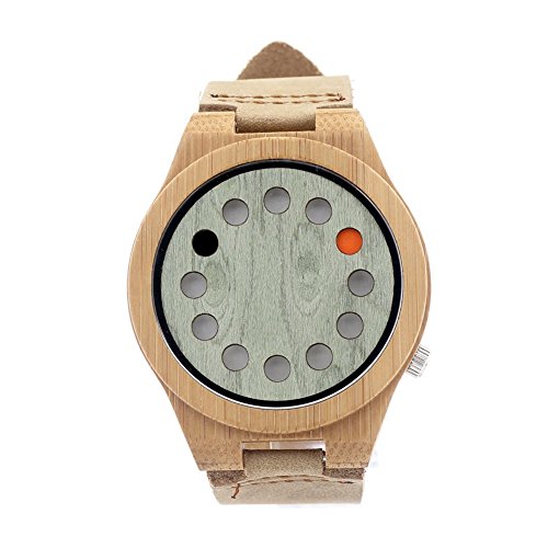 -. Title : BOBO BIRD B076 Unisex Bamboo Wood Watches Dial Dia 45mm With Real Leather Watch Bands