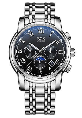 BOS 맨즈 일본 쿼츠 크로노그래프 스테인레스 스틸 방수 스포츠 워치