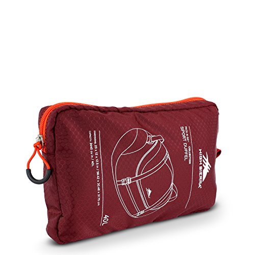 -. Brand : High Sierra -. Department : unisex-adult -. Feature : 40 liter, main compartment with large, zippered opening / Sport Duffel stuffs into tricot-lined headphone pocket for easy storage and display at retail / Two top, adjustable compression straps / Large, adjustable over-shoulder webbing strap / Padded top carry handle -. Label : High Sierra -. Manufacturer : High Sierra -. NumberOfItems : 1 -. PackageQuantity : 1 -. ProductGroup : Sports -. ProductTypeName : LAGE -. Publisher : High Sierra -. Size : One Size -. Studio : High Sierra -. Title : High Sierra 40L Packable Sport Duffel