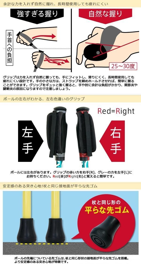 | 仕様 | SGマーク取得済 先ゴム:先端径14mm 対応身長:130~181cm 調節:ラチェット(ボタン)式、2cm毎/18段階調整 |