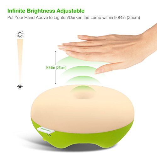 Poweradd Bedside Gesture Sensor LED Lamp, Infinite Brightness Adjustable Eye-caring Baby/Kids Sleep Night Light, With USB Charging Port, 100 Hours Runtime, Memory Function, Rechargeable - Green.
