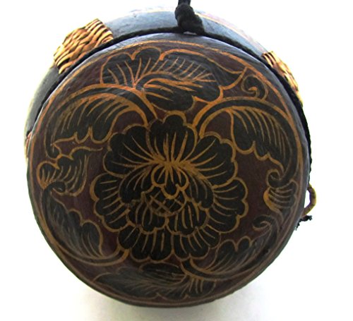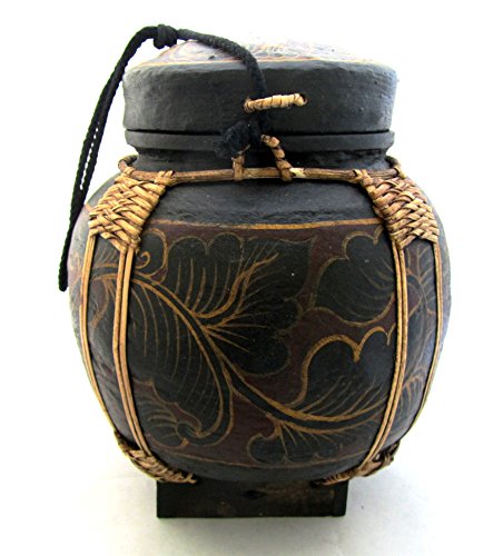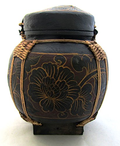 Thai Rice Box Decorative Hand Painted Bamboo Basket Handmade Storage Container Large 9" (9" Large Chocolate Lotus)
