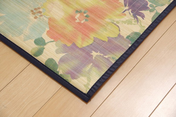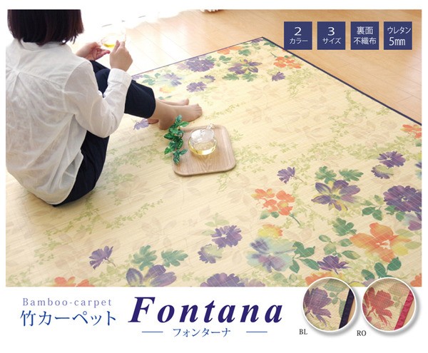 【商品名】水彩タッチ 花柄 竹ラグカーペット 『DXフォンターナ』 ブルー 約180×180cm