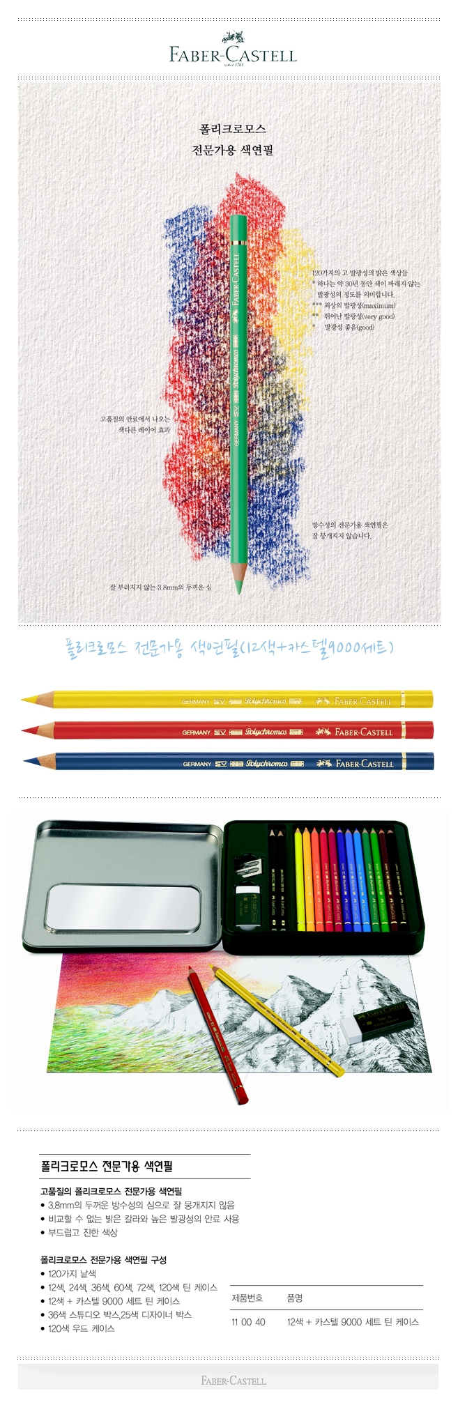 상품명 : 폴리크로모스 전문가용 색연필(12색+카스텔9000세트)