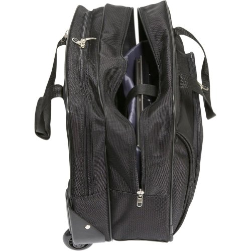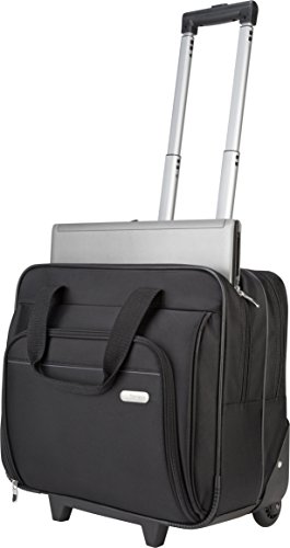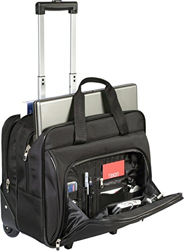 Product Description Item #: N36556. The Targus Rolling Notebook Case is designed to protect notebooks with up to 15.4 screens. The closed cell foam padding keeps your notebook protected while the durable/water resistant 1200D polyester material keeps belongings dry in wet weather. The front zip-down workstation includes pen loops, a business card holder, zippered pocket, cell phone pocket and large pouch to store additional accessories. The Metro Rolling Notebook Case also includes a large zippered compartment to store office essentials or clothing for overnight trips. The telescoping handle retracts into a zippered compartment when not in use and the case includes a dual carry handle for added convenience. The Metro Rolling Notebook Case is a functional transit case designed for professionals on the go. Product Description: Targus Rolling Notebook Case - notebook carrying case Product Type: Notebook carrying case Color: Black Product Material: 1200D polyester Dimensions (WxDxH): 14 in x 7.5 in x 16.5 in Weight: 7.1 lbs Notebook Compatibility: 15.4" Features: Zippered, water resistant, foam padding Carrying Strap: Hand grip Telescopic Handle / Wheels: Yes Manufacturer Warranty: Limited lifetime warranty Customers also search for: Discount Targus Rolling Notebook Case - Notebook Carrying Case, Buy Targus Rolling Notebook Case - Notebook Carrying Case, Wholesale Targus Rolling Notebook Case - Notebook Carrying Case, 0092636234881, TBR003US, Computer Carrying Cases 0