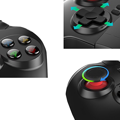 -. Feature : 【General Info】Newborn 9068 Game Pad upgraded from 9037 and 9021 with new mode and 4 new LEDs indicating working status. Optimized for Samsung Gear VR Oculus VR Headset; A good match to major Android smartphone, TV Box and Windows PC via Bluetooth or USB connection / 【Supported Device】Majority Android: BLU, Alcatel, OnePlus 3T, Samsung Galaxy S6 S7 Edge S8 Plus Note, HTC 10 Plus, Google Nexus 5X 6 6P Pixel XL, Huawei P7 P8 P9 P10 Plus, Lenovo P2, Honor 8 Pro, LG G2 G3 Pro G6, Sony Xperia XZ Premium, Moto G / Z Play Plus, Oppo and Windows PC / 【Design Details】L2/R2 buttons have analog function for more accurate operation. Ergonomic streamlining and comfortable hand hold feeling. The grips designed with non-slip texture, uneasily residues sweat for long-time operating games / 【Acceleration】Turbo function enables game action more quickly and strongly. Multi-media player function under mouse mode (like Vol+, Vol-, Play, Pause, Forward, Next) - Please study the pictures which tell more / 【Compatibility & Sestion】The gamepad majorly supports Android games in HID standard and PC games; For Apple iOS / iPhone, it works with some games in 'i-Cade' mode ONLY! - NOT support all games in iOS system. We don't sest pairing with Apple devices with no jailbreak