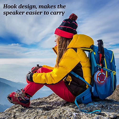 Key feature: ?Hook design-----Hang the speaker on the backpack easilly. Perfect choice for bicycle, hiking, travelling, climbing, fishing etc ?Strong and detachable suction cup------Adsorbed on the mirror, other smooth walls, listened to your cell phone music anywhere, don't fall off easily. The detachable features, allows the speaker to install on the hand-bar with bike mount ?Deep bass, loud stereo sound---Enjoy a High Definition stereo sound with a impressive volume. The music comes through crystal clear, with perfect audio playback regardless of what you're listening to. Even as maximum volume, this device projects perfectly ? IPX7 water resistant-----?Do not worry about listening to music in the bathroom. Take it to a place where there is water and is not affected by these factors.It is very suitable for home,or beach ?Durable, solid touch design-----Featuring a smooth rubber exterior that protects the waterproof speaker from scratches, impact and shocking ?Working distance-----It has bluetooth 4.0 which gives you a range of up to 10 meters so you can leep your device out of harms way