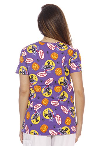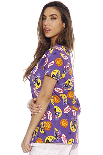 Dreamcrest Women's Scrub Tops / Holiday Scrubs / Nursing Scrubs, Halloween Pumpkins, Large