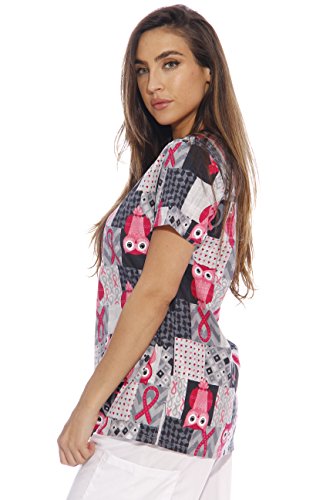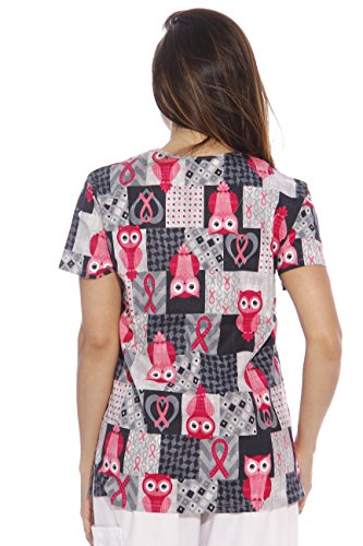 Dreamcrest Women's Scrub Tops / Holiday Scrubs / Nursing Scrubs, Ribbon Print, X-Small