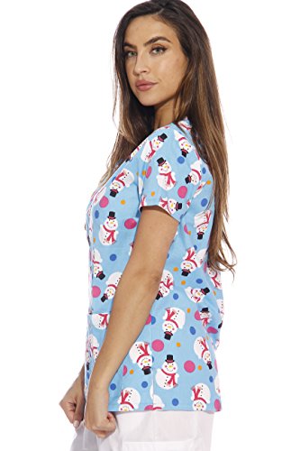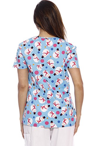 Dreamcrest Women's Scrub Tops / Holiday Scrubs / Nursing Scrubs, Snowman With Dots, Medium