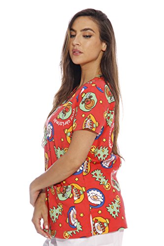 Dreamcrest Women's Scrub Tops / Holiday Scrubs / Nursing Scrubs, Ribbon Print, Large