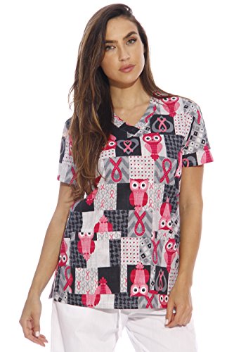 Dreamcrest Women's Scrub Tops / Holiday Scrubs / Nursing Scrubs, Ribbon Print, Small