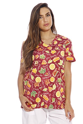 Dreamcrest Women's Scrub Tops / Holiday Scrubs / Nursing Scrubs, Harvest, Large