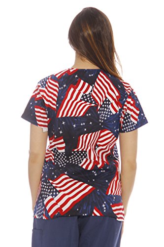Dreamcrest Women's Scrub Tops / Holiday Scrubs / Nursing Scrubs, Flags, Large