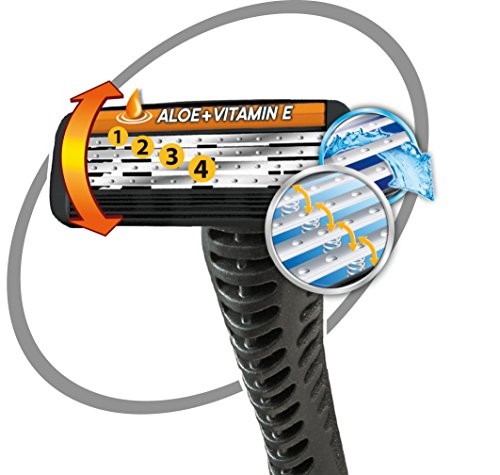 -. Feature : Herren-Nassrasierer mit Flex-Technologie / Schwingkopf mit 4 beweglichen Klingen für eine angenehme und sanfte Rasur Gleitstreifen mit Aloe Vera und Vitamin E für eine komfortable Rasur / Extrabreiter Gummi-Hautstraffer lässt die Klingen sanft über die Haut gleiten / Großer ergonomischer Griff speziell für Männer - garantiert eine gute Handhabung und optimale Kontrolle bei der Rasur