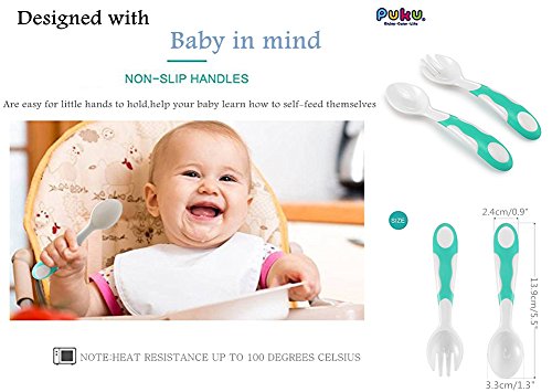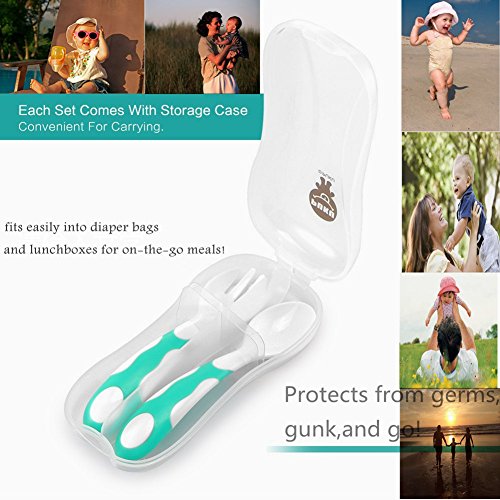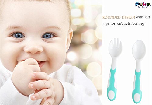 SOFT SAFE MATERIAL:Our baby utensils have a rounded design with soft tips and no sharp pointy bits. Our toddler spoon and fork set are made of high quality food-grade material and guaranteed to be free of any harmful chemicals. Each set is proven to be Latex free, Lead free, BPA free, and Phthalate free