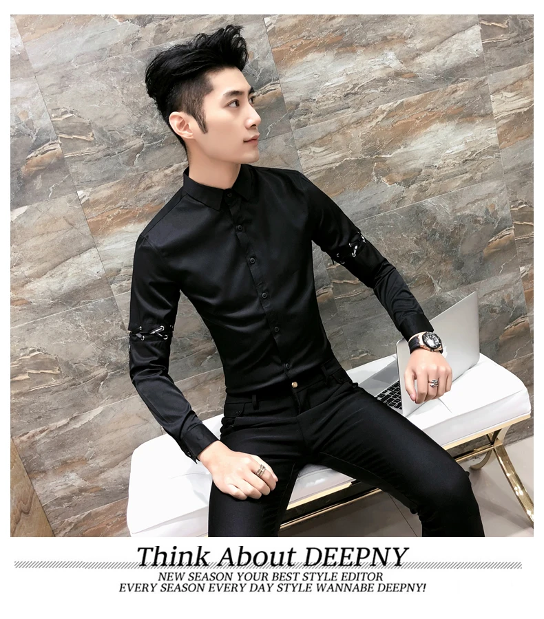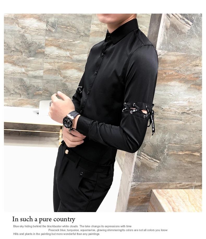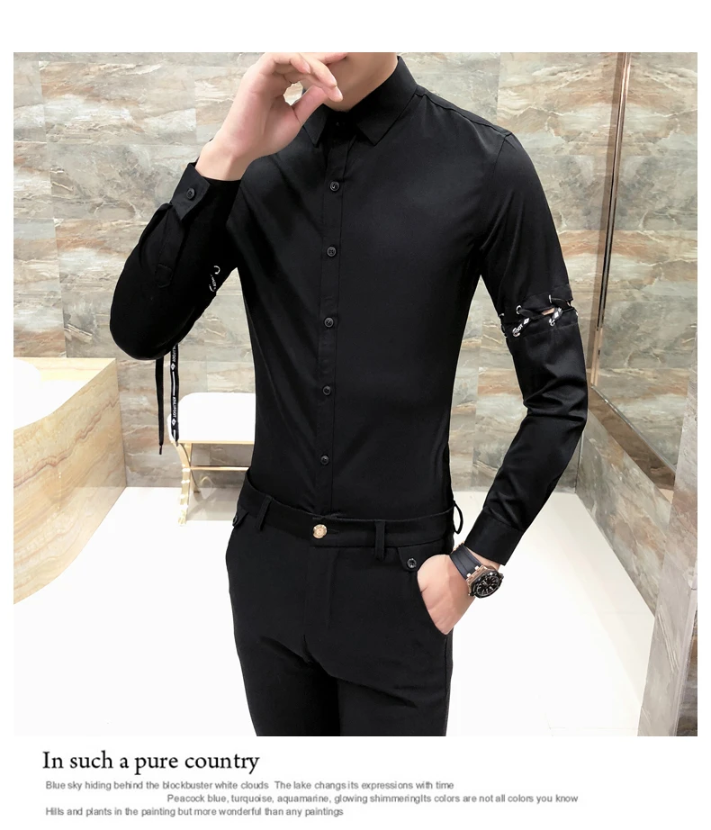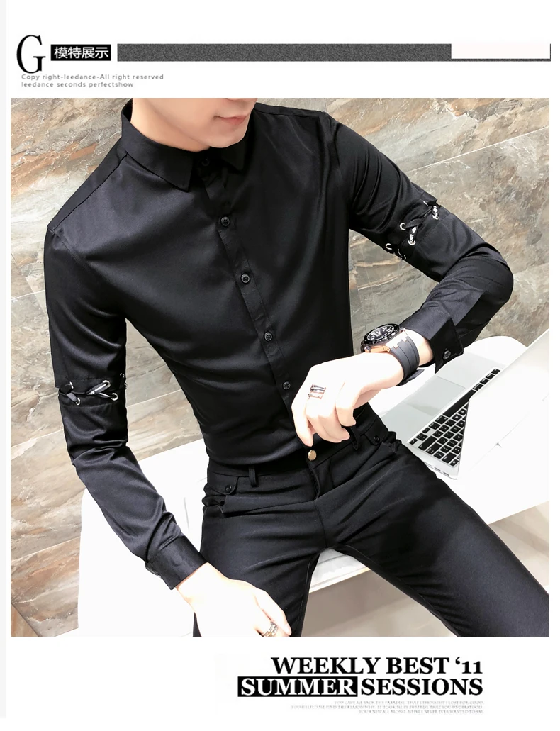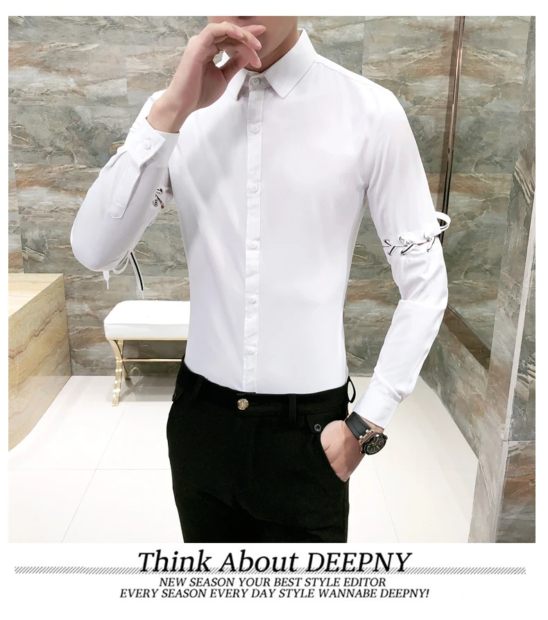 Long Sleeves Straps Shirts Men:Mens White Shirts