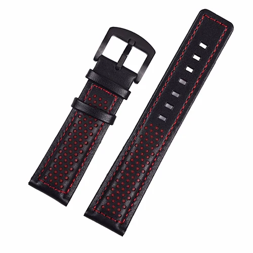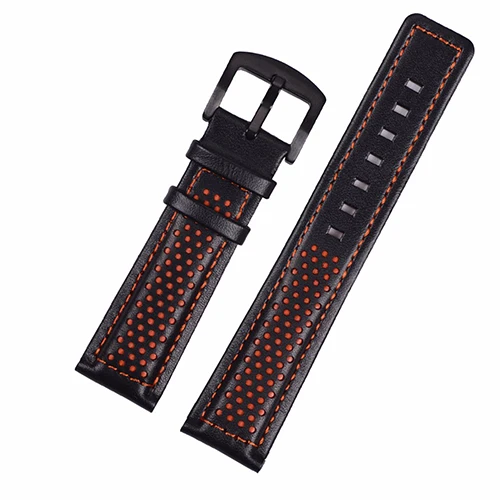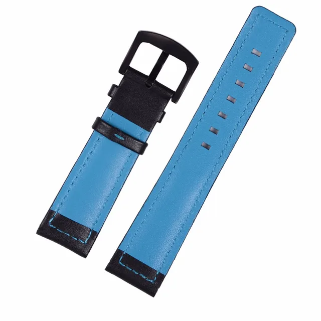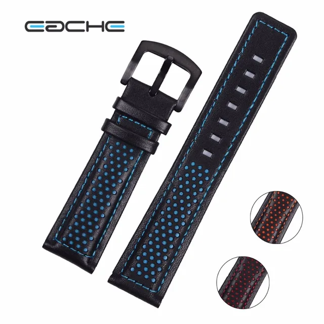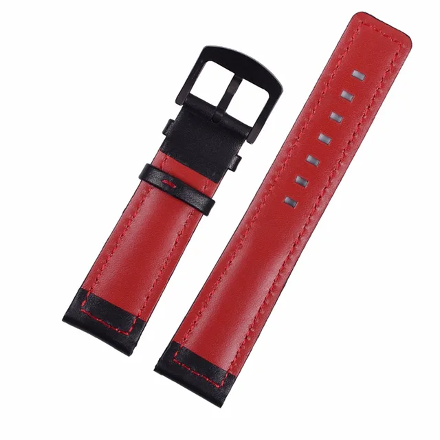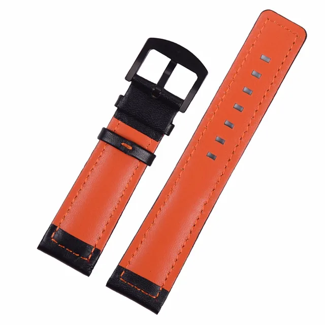 | [해외]범용 플랫 헤드 소 가죽 wathband 은색 또는 블랙 버클 블랙 시계 스트랩 레드 블루 orange 스레드 |