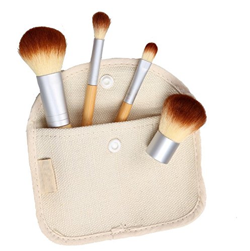 Three Legs 4 Pieces Professional Makeup Brush Set Bamboo Handle Foundation Blending Blush Concealer Eye Face Liquid Powder Cream Cosmetics...