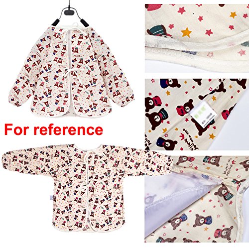 -. Feature : Lightweight waterproof fabric, stain and odor resistant. / Includes: 2 pcs Bibs. Tie closure and have a small pocket. / Fits children 2-4 years.Lead free, PVC free, BPA free. / It wipes down easily so you can reuse it at the next meal or art session, also machine washable. / Long sleeves for the ultimate in clothing protection.