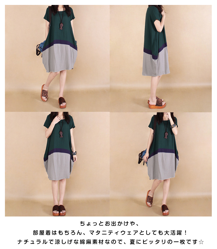 | 涼しげでサラっと気軽に着れるワンピースが登場!ゆったりめのシルエットは気になるボディラインも隠してくれます♪ 両サイドに大きめのポケット付で使い勝手も◎!ちょっとお出かけや、部屋着はもちろん、マタニティウェアとしても大活躍!ナチュラルで涼しげな綿麻素材なので、夏にピッタリの一枚です☆ | |